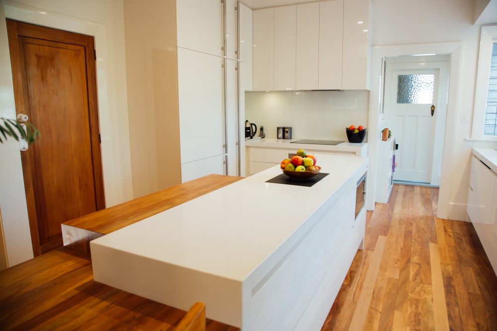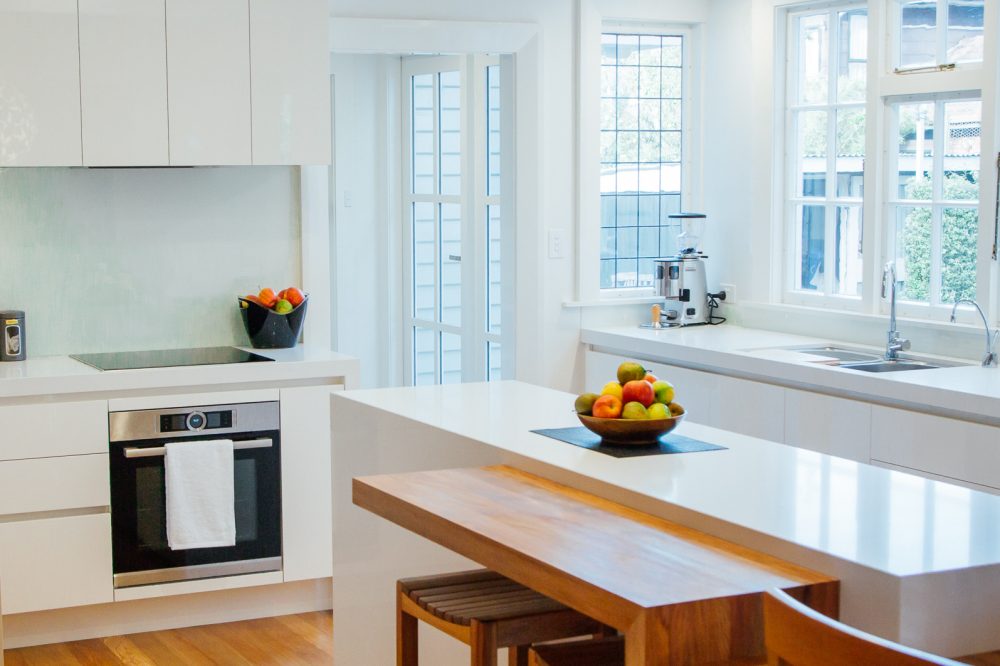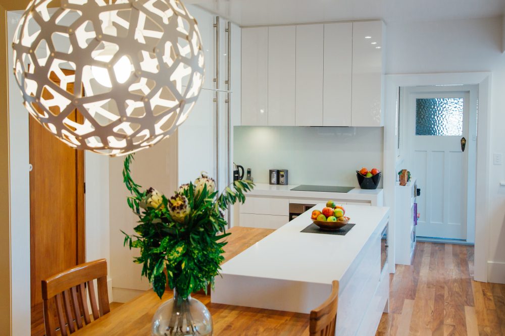 We were engaged to create open plan for kitchen/dining, living rooms. This included retro-fitting a steel portal/beam to allow for removal of a load bearing wall – to create open space.